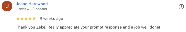 "Wow I can't speak more highly of Zeke. He came along at our lowest point in a bungled bathroom renovation from another horrible renovator. He fixed everything and got it up and running in less time than he thought. Thank you Zeke for everything, I feel saying THANK YOU, doesn't quite cut it, you are number 1 in my books"